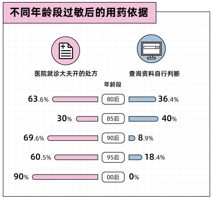 年龄越大,人们越相信经验判断,85后中就有4成的参与者通过查询资料自行判断用药,80后这一比例同样接近4成。