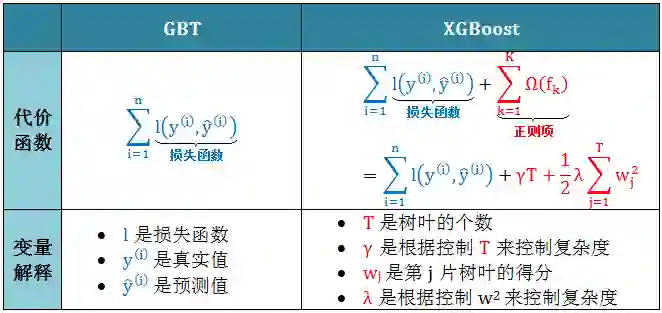 XGBoost 在代价函数里加入了正则项,用于控制模型的复杂度。正则项里包含了