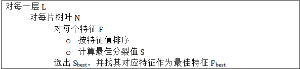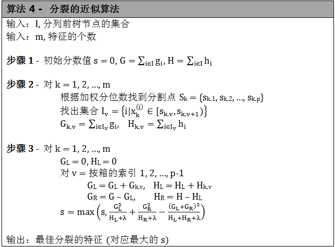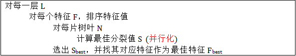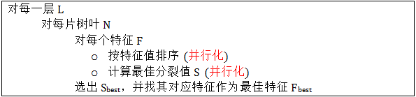 每一棵树都要按顺序生成出来啊。但是注意 XGBoost 的并行不是按照树的粒度并行的,而是按照特征的粒度来并行的。首先我们来看看分裂过程的伪代码: