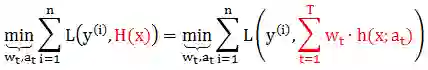 在给定训练数据 (x(i), y(i)) 及损失函数 L(y, H(x)) 的条件下,学习加法模型 H(x) 可转换成下面损失函数最小化问题