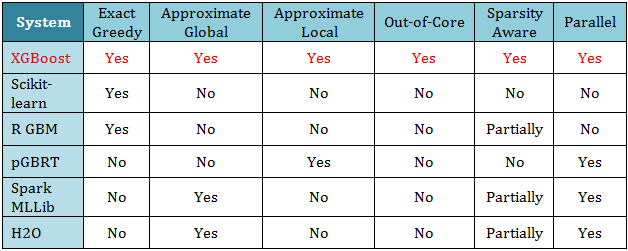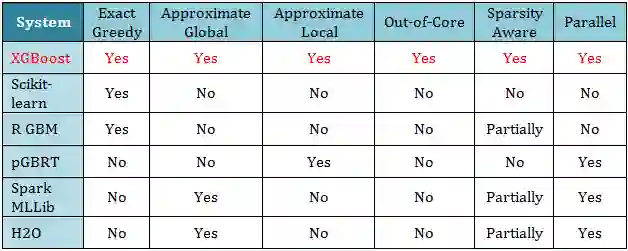 下图给出了 XGBoost 和其他开源系统方法的各项对比,发现 XGBoost 真的是完胜。