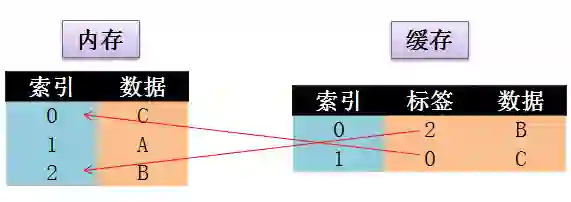 缓存 (cache) 是内存 (main memory) 中少部分数据的复制品。它们之间的联系如下图:
