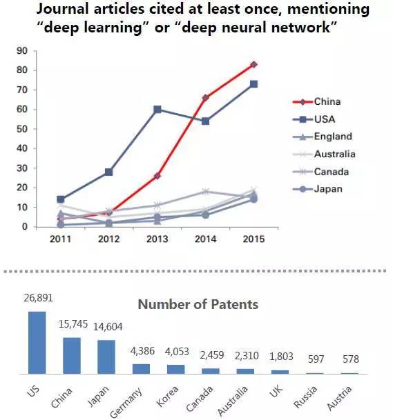 中国的人工智能研究机构发展很快。2016 年美国白宫发表的一份研究报告显示,中国发表的关于深度学习的科研论文数量已经超过了美国。中国的纯人工智能研究被引用量已经达到了第一位,而发表研究影响力已经达到了全球第三位。近日,《日经亚洲评论》的一份调查显示,中国 2010 - 2014 年之间在人工智能领域的专利申请数为 8410 件,相比 2005-2009 年增长了 186%。