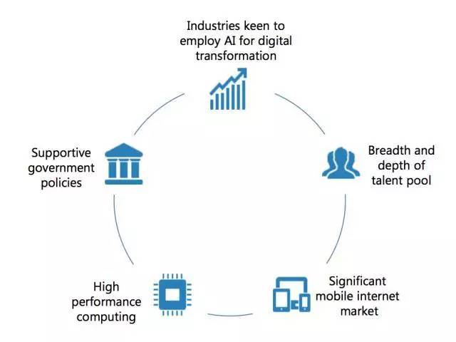 其中,前两个因素尤为重要,是中国发展成为全球 AI 中心的独特优势。