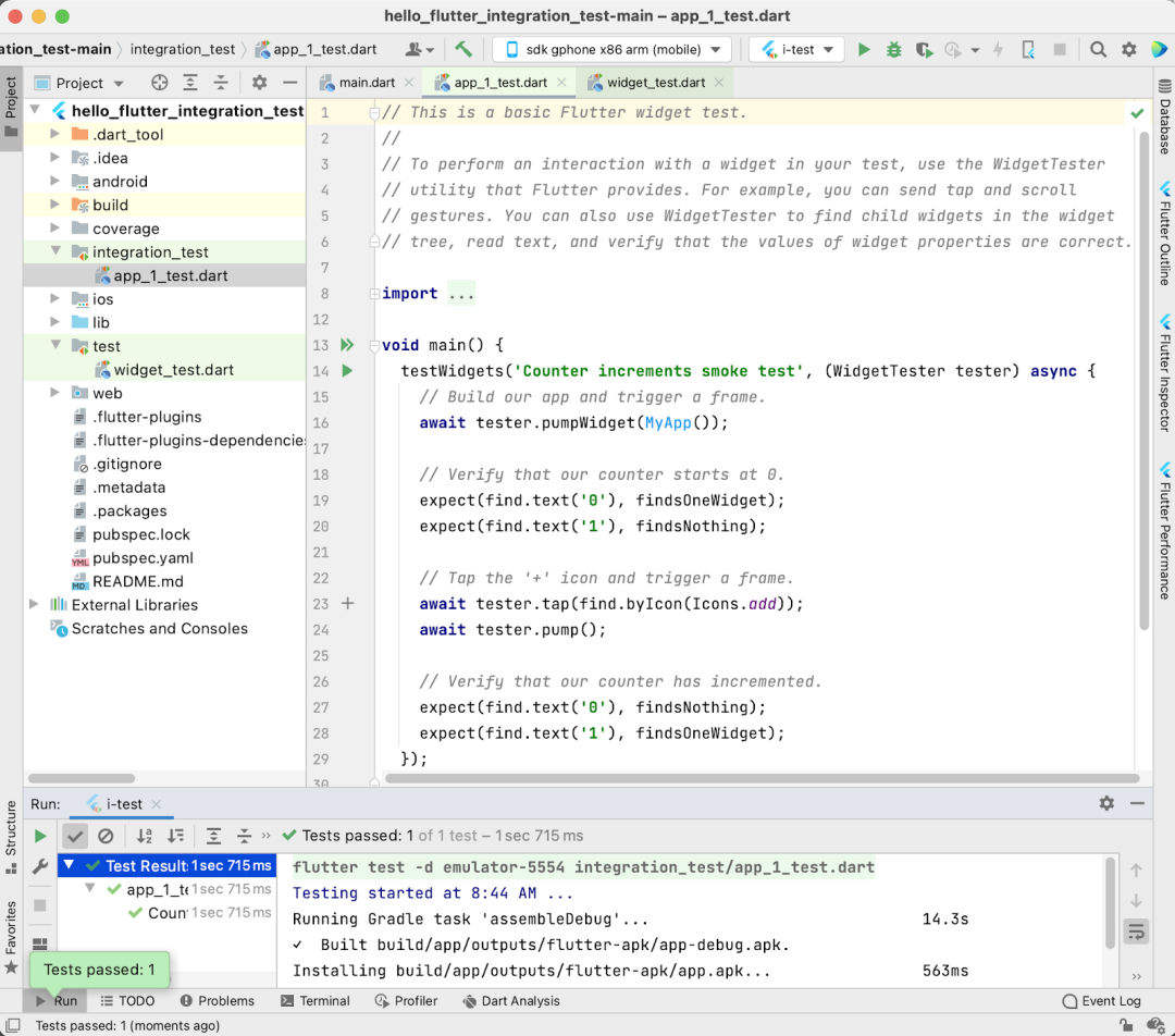 △ 在 IntelliJ/Android Studio 插件中集成测试您的 Flutter 应用