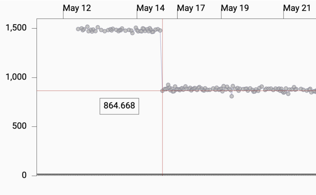 △ 在添加修复程序以积极地回收未使用的大型图片的内存前后的 GC 数量对比