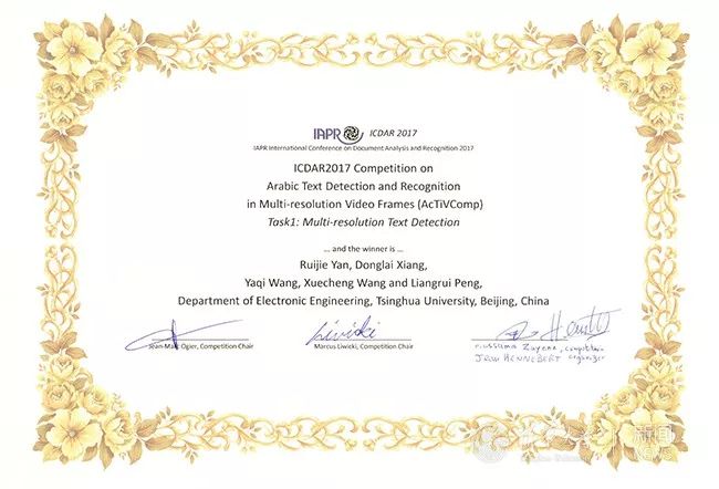 阿拉伯文视频文本识别获奖证书