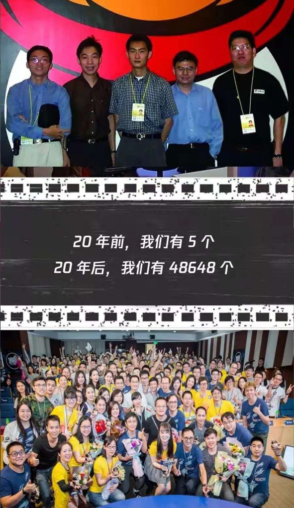 20年前,腾讯包括马化腾只有5个人,当年张志东和马化腾在办公室畅想腾讯的未来——三年后,腾讯的员工将达到18个人,正好坐满100来平的办公室。20年后,腾讯的员工达到了48648名。