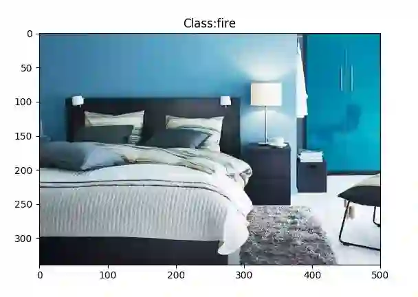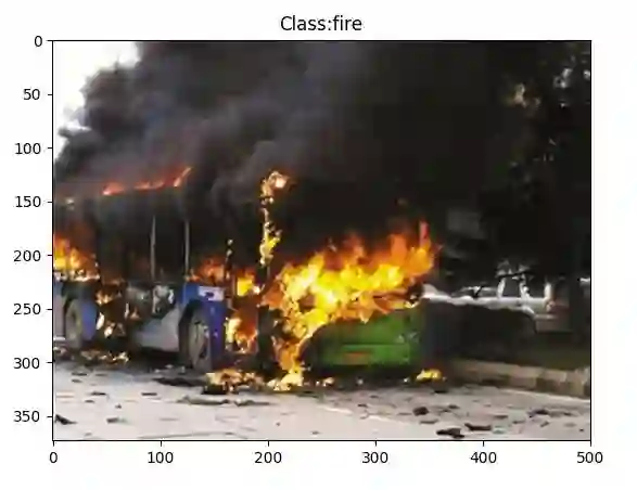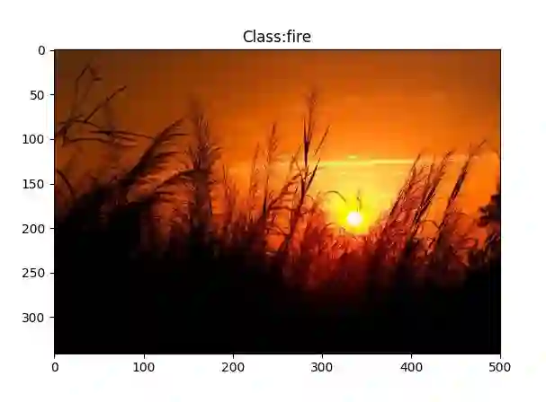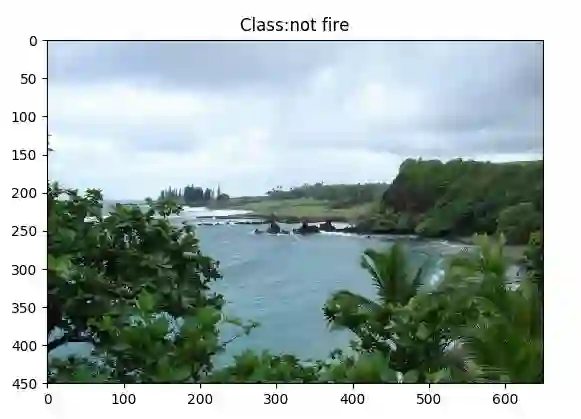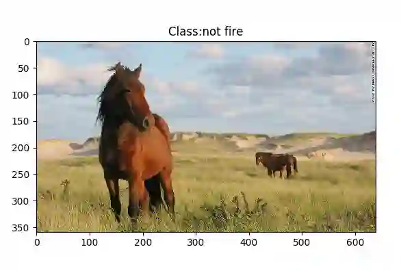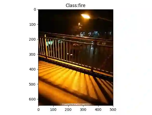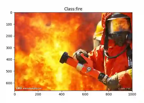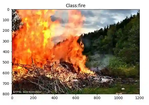 class_name = ['not fire', 'fire']def test_image(path_image, num_class):img_string = tf.read_file(path_image)img_decoded = tf.image.decode_png(img_string, channels=3)img_resized = tf.image.resize_images(img_decoded, [224, 224])img_resized = tf.reshape(img_resized, shape=[1, 224, 224, 3])model = Vgg19(bgr_image=img_resized, num_class=num_class, vgg19_npy_path='./vgg19.npy')score = model.fc8prediction = tf.argmax(score, 1)saver = tf.train.Saver()with tf.Session() as sess:sess.run(tf.global_variables_initializer())"./tmp/checkpoints/model_epoch50.ckpt")plt.imshow(img_decoded.eval()):" + class_name[sess.run(prediction)[0]])plt.show()2)
