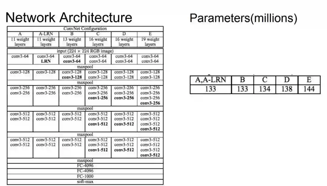 模型D是就是经常说的VGG16网络,模型E则为VGG19网络。