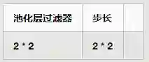 整个网络包含5个池化层,分别位于每一个Stage的后面,每个池化层的尺寸均一样,如下:
