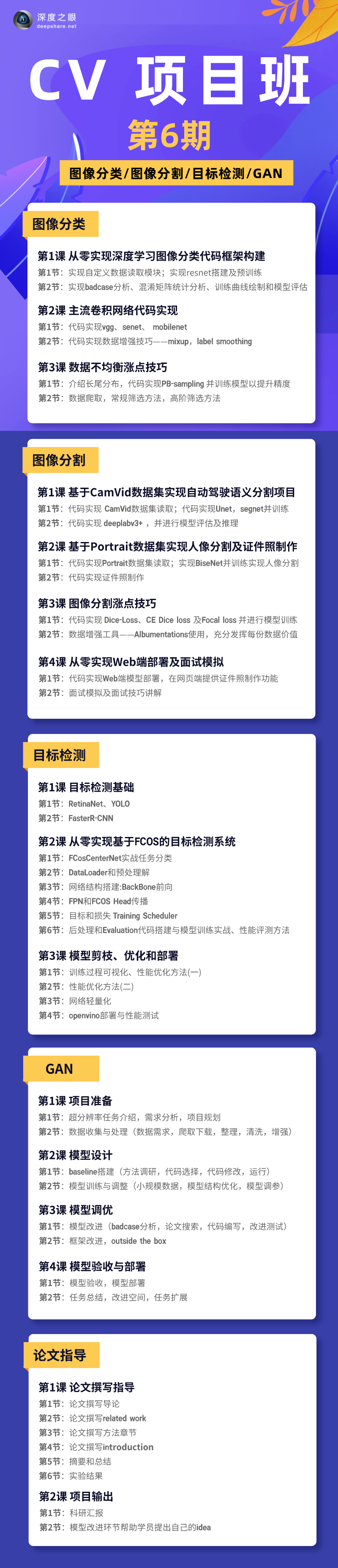 如果你正在发愁论文、就业,我建议你参加深度之眼CV项目班。
