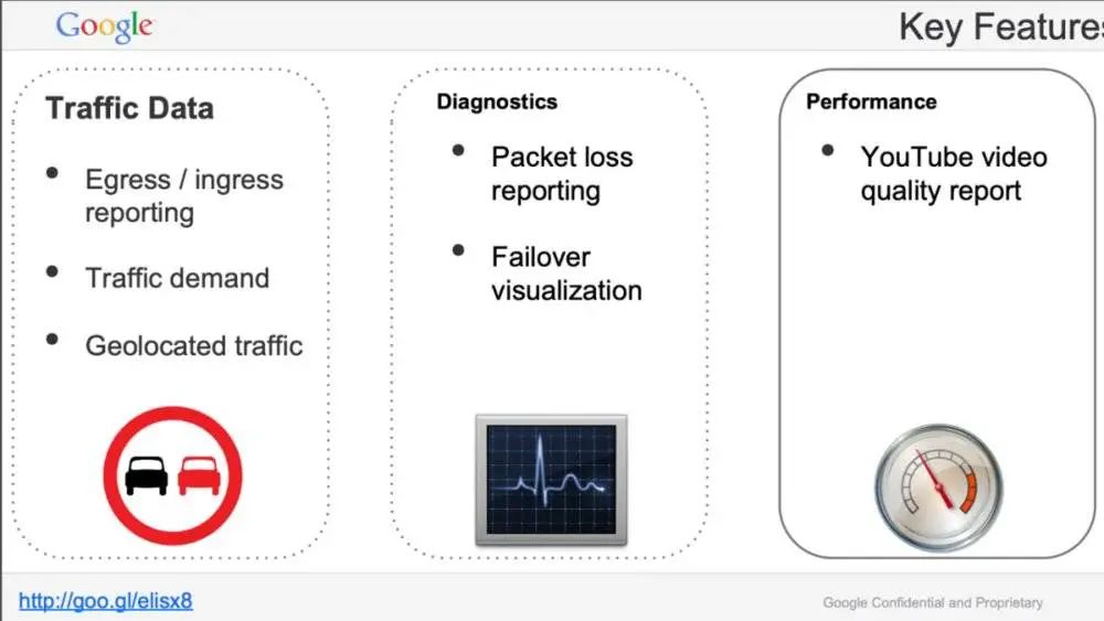 根据 YouTube 产品经理 Ritz Campbell 在 2014 APNIC Conferences(亚太互联网络信息中心年会)上的一份关于 Google Peering 的宣讲 PPT 显示。
