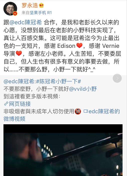 8月27日,一只靴子正式落地,小野电子烟宣布了陈冠希为其特邀品牌创意官,并推出了一支广告视频。