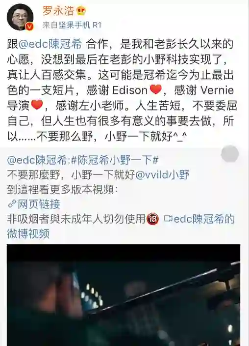 从品牌的调性出发,陈冠希身上的特质以及经历,估计就是和小野电子烟有契合之处。