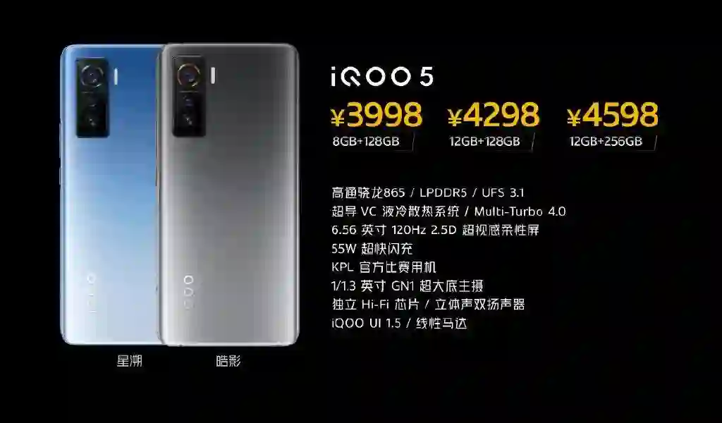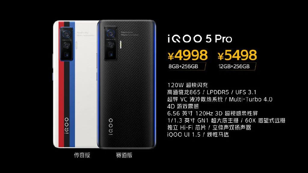 iQOO 5 Pro(8GB+256GB):4998.00元;