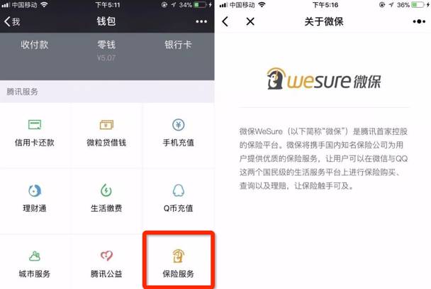 昨日,腾讯在微信钱包以及QQ钱包上线保险服务板块,并在一定范围内进行测试。
