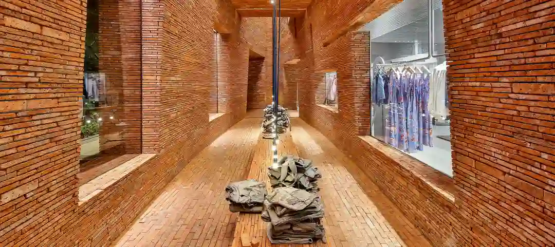 UR的上海华狮广场旗舰店在2016年进行整体形象改造后,凭借独特的空间设计一度成为热门打卡点,店面将废弃红砖作为外立面主体,进店走廊空间被打造成了一条超30米的“峡谷”,被称为“峡谷之墟”。