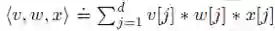 其中 v,w,x为3个d维向量,v[j], w[j], x[j]分别表示向量v,w,x的第j个分量