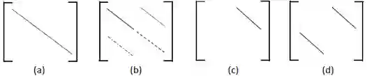 3. DistMult,ComplEx,CP和SimplE都可以看作双线性模型(需要把SimplE的头尾表示拼接作为一个实体的单一嵌入),这时他们关系表示的参数如下图: