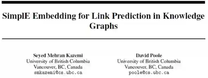 本文提出了一种简单可解释且具有完全表达能力的双线性模型用于知识图谱补全。文章证明了SimplE模型在实验中性能良好,并且具有编码先验知识的能力。