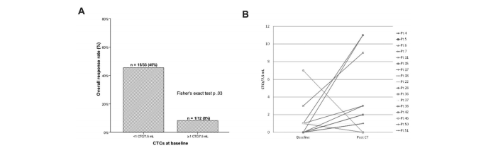 图5:化疗前后CTCs数量变化与预后关联(引用自PLoS One.2014 Aug 8;9(8))