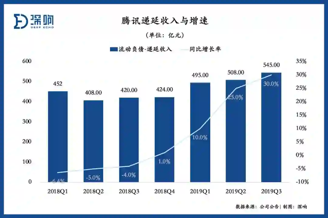 值得注意的是,Q3财报显示,腾讯流动负债项下的递延收入在 Q3 末达 545 亿元,同比增长 30%,绝对值与季度增速续创历史新高,期待后续利润释放。递延收入体现了公司重磅游戏较强的货币化能力和公司在游戏行业的龙头地位。