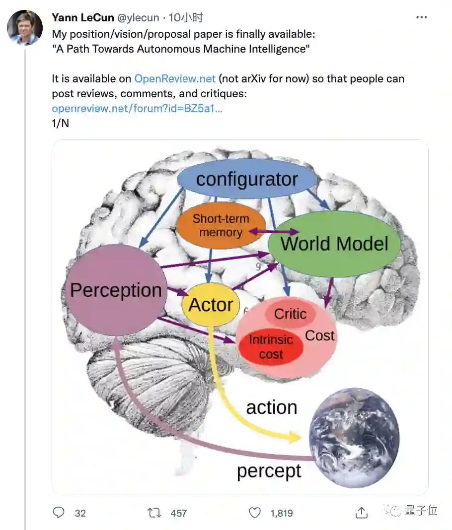 在这里,他重新组合了认知科学、系统神经科学、最优控制、强化学习和“传统”人工智能等各个学科中提出的想法,并将它们与机器学习中的新概念相结合,提出了一个由六个独立模块组成的自主智能架构。