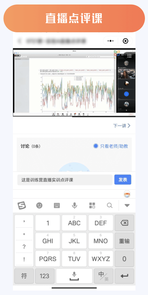 训练营采用直播和录播相结合的教学方式,直播课程包含案例点评、实训强化、论文领读以及AI前沿话题分享。学习过程中,每一位同学,都有和名师“面对面”对话的机会。