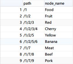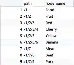 按照Path Enumeration 进行存储后的结果如下: