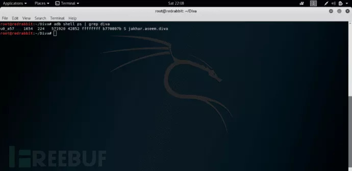 adb shell是用于通过adb发送任何shell指令的命令;ps作为shell指令发送,ps的输出提供给grep命令。Grep是一个非常棒的用于搜索相关字符串的工具,在本例中我们搜索的字符串为“diva”。