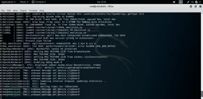 从输出结果中我们得知,diva的pid为1654,包名称为“jakhar.aseem.diva”
