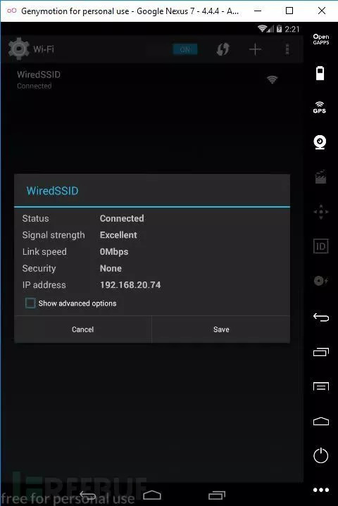 现在两台机器都已启动,下面让我们来检查下kali和Android设备之间的连接情况。为此,我们需要获取Android设备的IP地址。