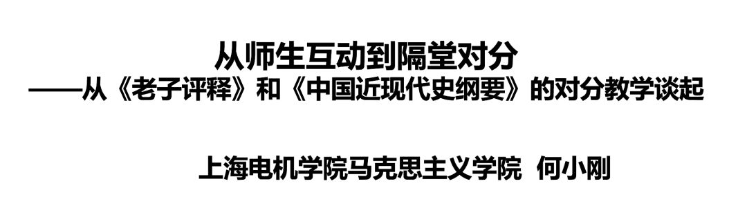 上海电机学院马克思主义学院院长何小刚教授结合《老子评释》、《中国近现代史纲要》两门课程分享对分课堂教学改革,这种模式不是简单的师生互动,标准的对分课堂模式是隔堂对分,学生有内化吸收环节,在下一堂课进行集中的亮点交流和问题反馈。