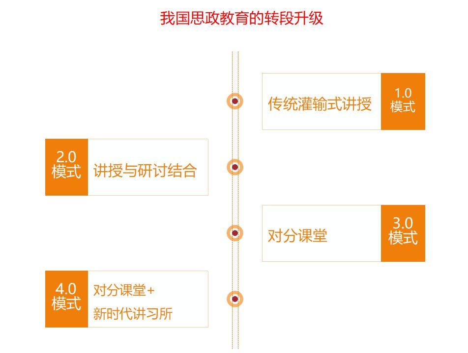 我国思政课教学过程中的各种探索、各种改革,经历了传统灌输式讲授1.0模式,到讲授与研讨结合2.0模式,升级到对分课堂3.0模式,再到新时代思政课的新生态(对分课堂+新时代讲习所)4.0模式,全方位、立体化呈现了思政课深度互动教学的全部要义!这是新时代、新科技环境下培养学生坚定理想信念的重要努力,是增强学生的中国特色社会主义道路自信、理论自信、制度自信、文化自信的重要途径。只有不断深化高校思政课教学改革创新,才能顺应新的时代背景与学生实际,才能更好地培养一代又一代拥护中国共产党领导和我国社会主义制度、立志为中国特色社会主义奋斗终身的有用人才。
