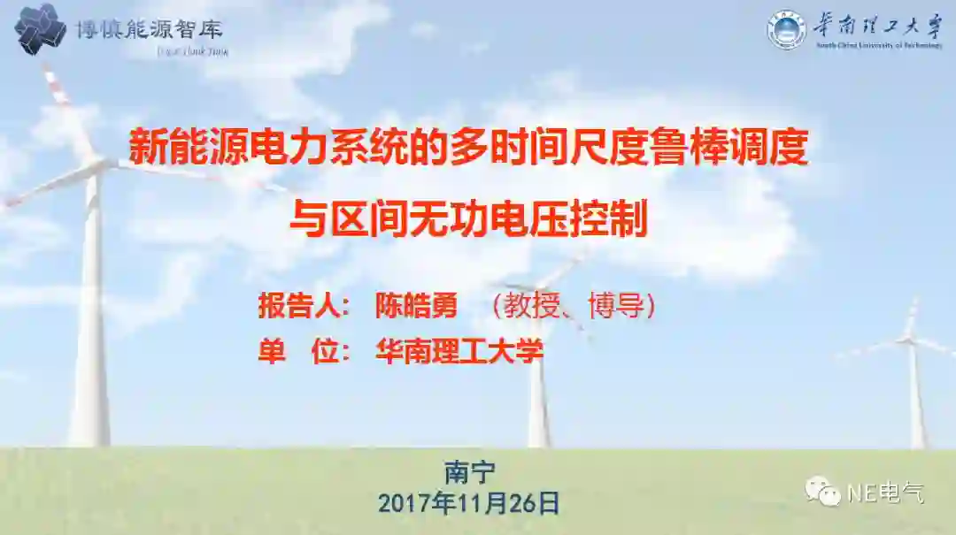 陈皓勇,华南理工大学电力学院教授(三级),博士生导师,电力经济与电力市场研究所所长,IEEE高级会员,国家优秀青年科学基金获得者。1990年考入西安交通大学少年班,1995年7月电力系统及其自动化专业本科毕业,2000 年6 月博士毕业(师从王锡凡院士)并留校任教。2006年12月调入华南理工大学。以复杂(大规模、随机性、分布式、网络化)电力(能源)系统(建模、分析、优化与控制)为核心学术领域,长期从事电力系统规划、运行与控制,新能源并网和智能电网技术,电力经济与电力市场,综合能源系统等方向的基础前沿研究和教学工作。基于数学、物理学、经济学和生物学的基础理论,广泛采用信息/通信、优化/控制、线性/非线性系统、网络理论和经济管理的前沿方法和先进技术,着重电力(能源)系统问题的多学科交叉研究。近年来主持的国家和省部级重点项目的研究包括:国家优秀青年科学基金项目“含高渗透率间歇式能源的电力系统鲁棒调度理论及方法”, 国家自然科学基金项目“基于微分博弈理论的电力系统最优协调电压控制研究”,国家高技术研究发展计划(863 计划)“先进能源技术领域智能电网关键技术研发”重大项目“多类型新能源发电综合消纳的关键技术”(子题),国家自然科学基金项目“电力系统运行方式优化和综合资源规划的协同进化算法”,国家社会科学基金项目“电力市场交易制度的实验经济学研究”,教育部新世纪优秀人才支持计划资助项目“风电大规模并网条件下电力系统优化调度理论及方法”,教育部科学技术研究重点项目“含大型风电场的电力系统安全约束机组组合模型及算法研究”等10余项国家和省部级重点项目。在国内外权威期刊和国际会议发表论文150余篇,其中SCI收录论文30余篇。获教育部高等学校科学研究优秀成果奖自然科学一等奖等省部级以上奖励4项。担任中国能源研究会能源互联网专委会、中国自动化学会能源互联网专委会、中国电机工程学会新能源并网与运行专委会、中国人工智能学会智慧能源系统专委会、中国能源学会专委会委员,担任国家科学技术奖励评审专家、中国博士后科学基金评审专家、2013年至2014年IEEE-PES亚太电力与能源工程国际会议(IEEE PES APPEEC)技术委员会主席等职,任《Protection and Control of Modern Power Systems》(PCMP)、《电力自动化设备》、《分布式能源》、《电力大数据》等多家重要期刊杂志编委。创立“全球华人电力与能源协会”(香港)并获联合国教科文组织总部嘉奖。
