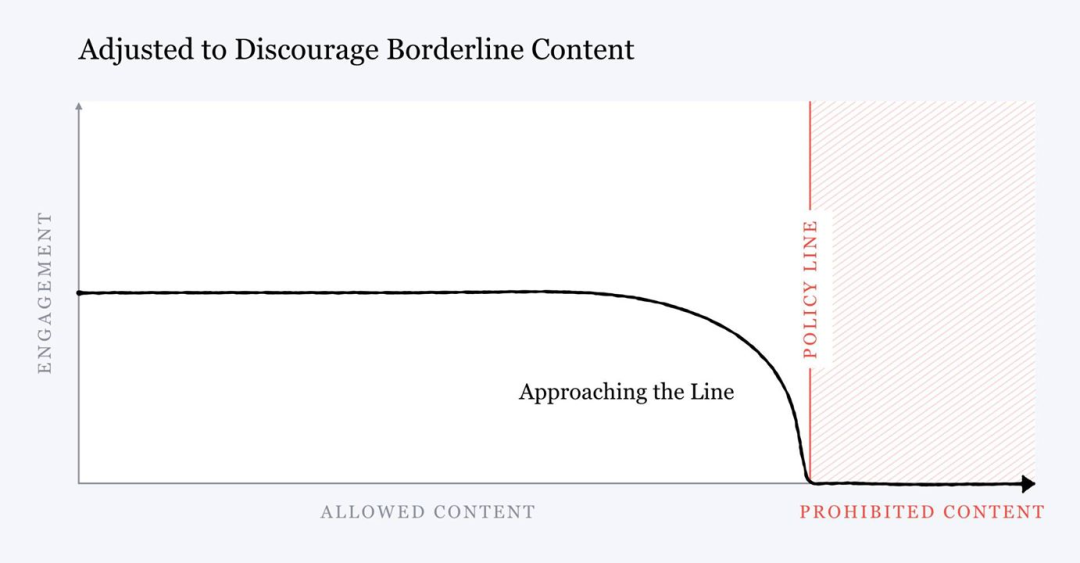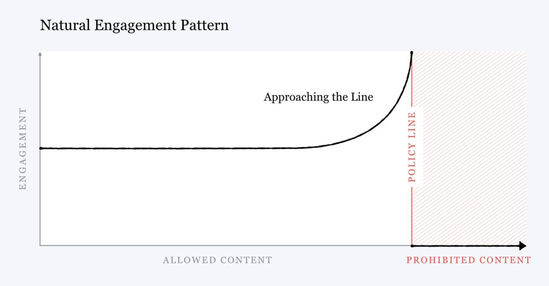 Facebook的研究表明,无论我们划定的内容审核边界线在哪里,当内容越接近这条边界线时,平均会有更多的人参与其中---- 即使事后他们会说,不喜欢这些内容。越知道不好,越想看。