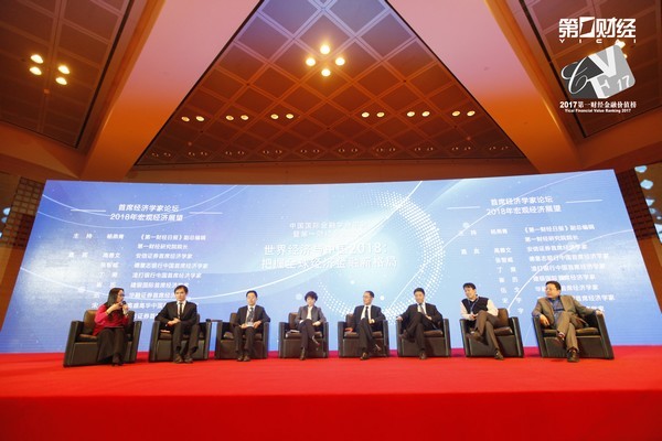 下午的峰会包含了首席经济学家展望论坛,第一财经日报副总编辑、第一财经研究院院长杨燕青主持,安信证券首席经济学家高善文、德意志银行中国首席经济学家张智威、渣打银行中国首席经济学家丁爽、建银国际首席经济学家崔历、华融证券首席经济学家伍戈、高盛高华中国首席经济学家宋宇、东方证券首席经济学家邵宇参与论坛,各自发表了对2018年宏观经济的展望。