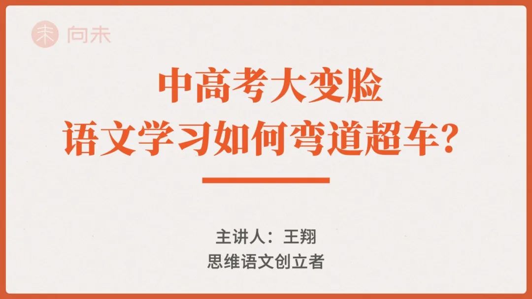 新高考改革之后,语文的区分度大幅提升。这一次,我们请到王翔老师分享,重点分析,中高考大变脸的情况下,如何通过语文学习实现弯道超车。