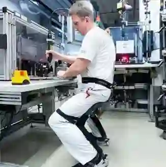 车间装配工作太累怎么办?宝马装配车间给工人配上助力装置,钢铁甲及可以随身携带的椅子,不仅为员工增加力量,还缓解了疲劳,这就是人性化...