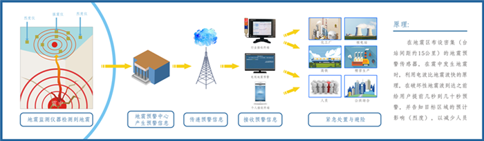 地震预警的原理就是借助地震中 P 波(纵波)与 S 波(横波)在传播速度上的差异,在 P 波到达监测站时发出预警,让预计烈度超过一定阈值区域内的人在