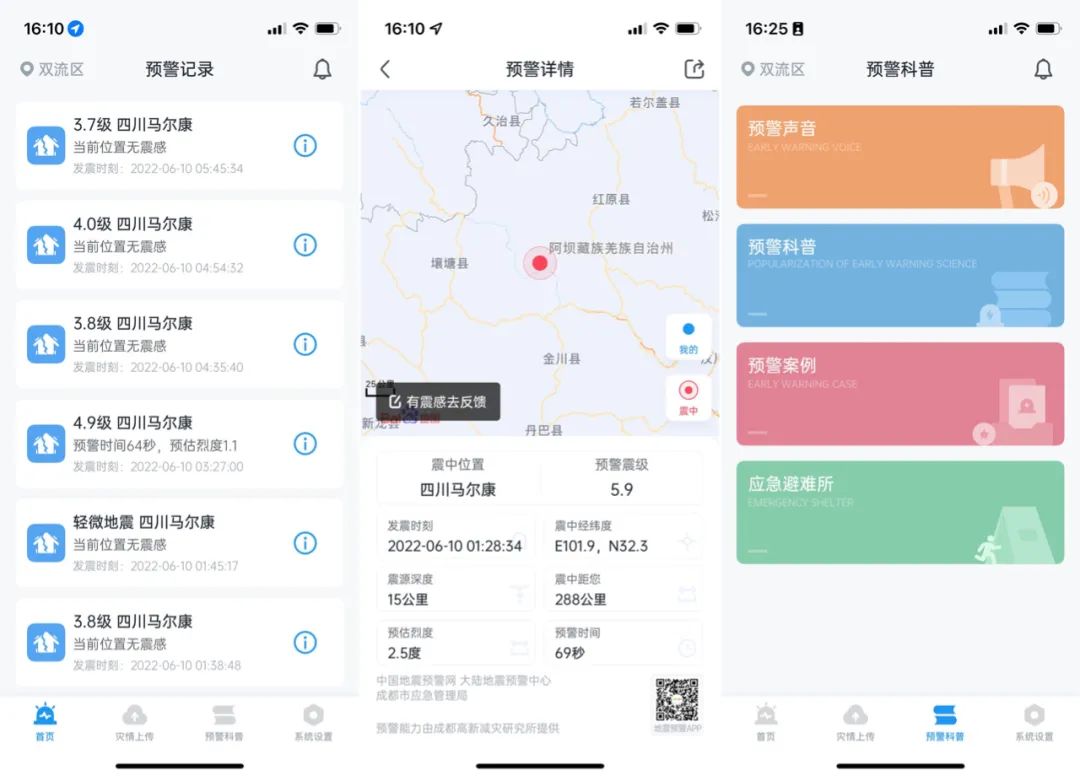 」,但前者并未采用中国地震台网的数据,后者并未集成预警功能。在目前全国地震预警并未接入 iOS 系统紧急预警系统、只有少量国产 Android 系统集成应急管理局预警推送的情况下,在地震频发区域安装一个专用的预警 App 还是有必要的。