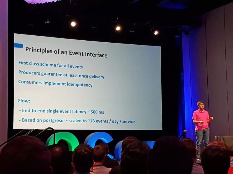 在接下来的演讲中,Bryzek 讨论了事件和事件流的重要性。对于人们提出的要访问 Flow.io API 的请求,他回应说,“我们提供了一组出色的 API,但还是尽量订阅我们的事件流吧”。事件接口的关键原则包括:为所有事件定义模式;生产者可以保证至少一次交付;消费者需要实现幂等性。在 Flow.io 的架构中,端到端的单个事件延迟约为 500 毫秒,基于 PostgreSQL 实现,每个服务每天最大规模约为 10 亿个事件。
