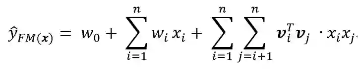 其中w_0是全局的偏置,w_i表示第i个特征对目标的重要程度,v_i^T v_j则表示因子化的交互,v_i∈R^k是特征i的embedding向量。