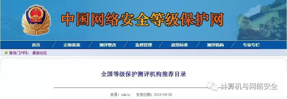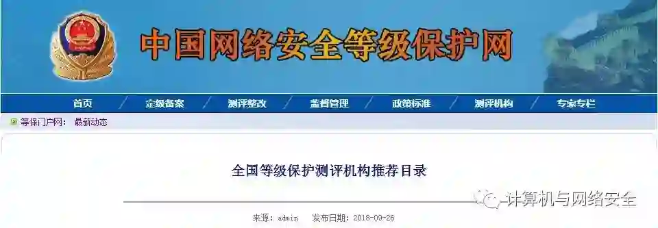 国家信息安全等级保护工作协调小组办公室推荐测评机构名单 |