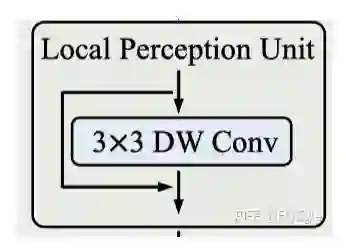 本文的一个核心点是希望模型具有long-range的能力,同时还要具有local特征的能力,所以提出了LPU这个模块,很简单,一个3X3的DWconv,来做局部特征,同时减少点计算量,为了让Transformers的模块获取的longrange的信息不缺失,这里做了一个shortcut,公式描述为: