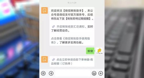 据自媒体“晓程序速报”消息,微信“商品橱窗”功能正在内测,用户在关注公众号“微信转账助手”后,部分用户可以通过发送“橱窗”获取开通资格。开通商品橱窗后,用户可便捷发布多个商品信息,一键转发、分享给顾客自助下单,还可自动统计订购记录。