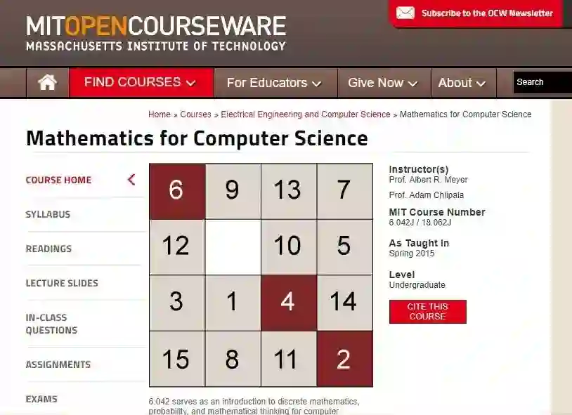 【计算机科学中的数学】(Mathematics for Computer Science)是 MIT 计算机专业的开放课程之一(可以点击[阅读原文]跳转至原链接)。
