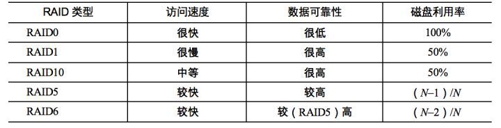 在相同磁盘数目(N)的情况下,各种RAID技术的比较如下表所示: