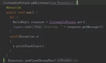 除了将 ListenableFuture 加入到 Futures 中由 gRPC 的线程池执行异步回调,也可以自定义线程池执行异步回调,代码示例如下: